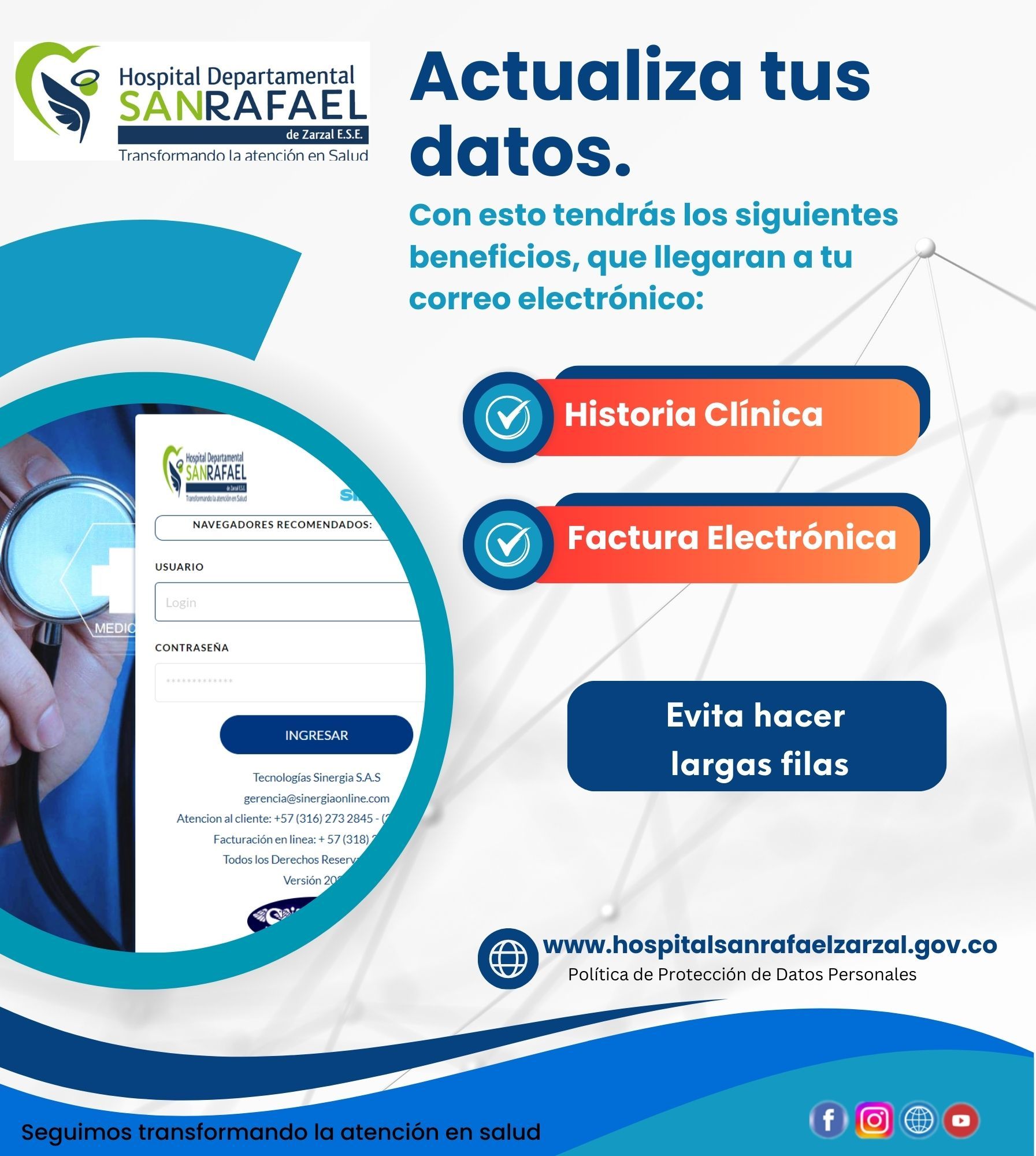 * Registrate con tu correo electrónico, entrando a la pagina web www.hospitalsanrafaelzarzal.gov.co o escanea el código QR.