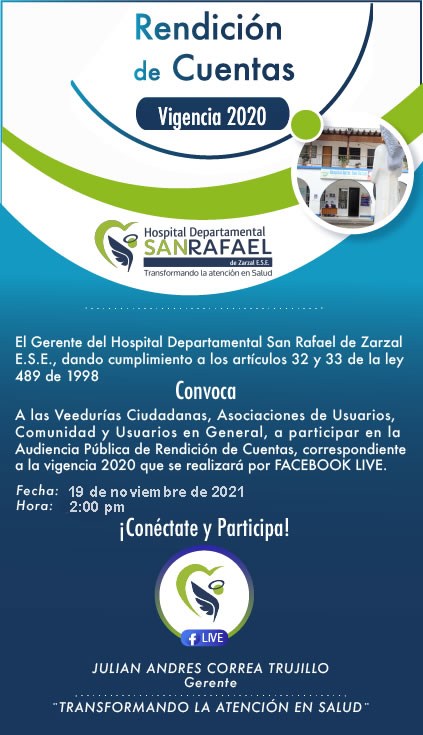 Convocatoria Rendición de Cuentas vigencia 2020, conéctate por facebook like y participa con nosotros este 19 de noviembre de 2021.